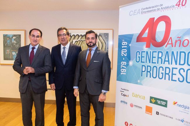 Esta jornada forma parte de la celebración del 40 Aniversario de la constitución de la Confederación de Empresarios de Andalucía, que bajo el lema “Generando progreso” trata con estos actos de exponer a la sociedad andaluza, en especial a sus empresas, los desafíos que tienen por delante. El acto de este lunes ha contado con el patrocinio de Fundación Cajasol, Bankia, Caja Rural del Sur, Nedgia Andalucía Grupo Naturgy, Antea Previsión, Costasol de Hipermercados, Orange, Cosentino y Garántia.
