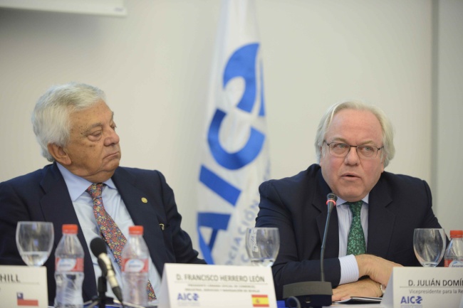 Francisco Herrero tuvo palabras de elogio a su antecesor en el cargo, Julián Domínguez, presidente de la Confederación de Cámaras de Comercio de Colombia, al que hizo entrega de una Medalla de Honor e invitó a participar en el nuevo Consejo Consultivo de la Asociación.