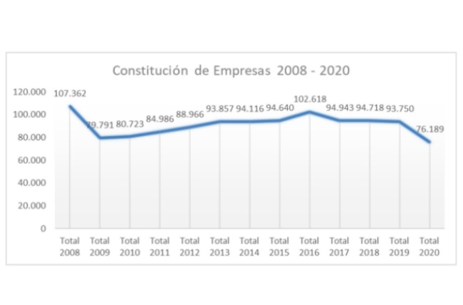 El ejercicio cierra con un total de 76.189 nuevas empresas, lo que supone un 18,73% menos con respecto a 2019 y la menor cifra desde 2008. Incluso en 2009, en plena crisis económica, se crearon 3.602 empresas más (79.791). Así se desprende del Radar de Concursos de Acreedores y Creación de Empresas del mes de diciembre, elaborado por el Gabinete de Estudios Económicos de axesor.