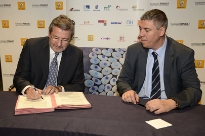 El presidente director general de Renault en España, José Vicente de los Mozos, y el presidente del Club de Excelencia en Sostenibilidad, José Longás, han firmado el acuerdo de adhesión a este foro empresarial. El acto contó con un padrino de excepción, el filosofo José Antonio Marina.