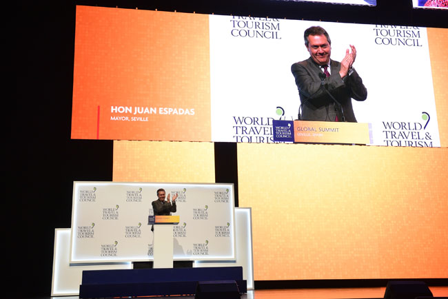 El alcalde de Sevilla, Juan Espadas, y la presidenta del Consejo Mundial de Viajes y Turismo, (WTTC, por sus siglas en inglés), Gloria Guevara, han realizado un primer balance inicial sobre la cumbre que la asociación de la industria turística internacional celebrada en la capital hispalense, y que ha cedido el testigo a Puerto Rico 2020.